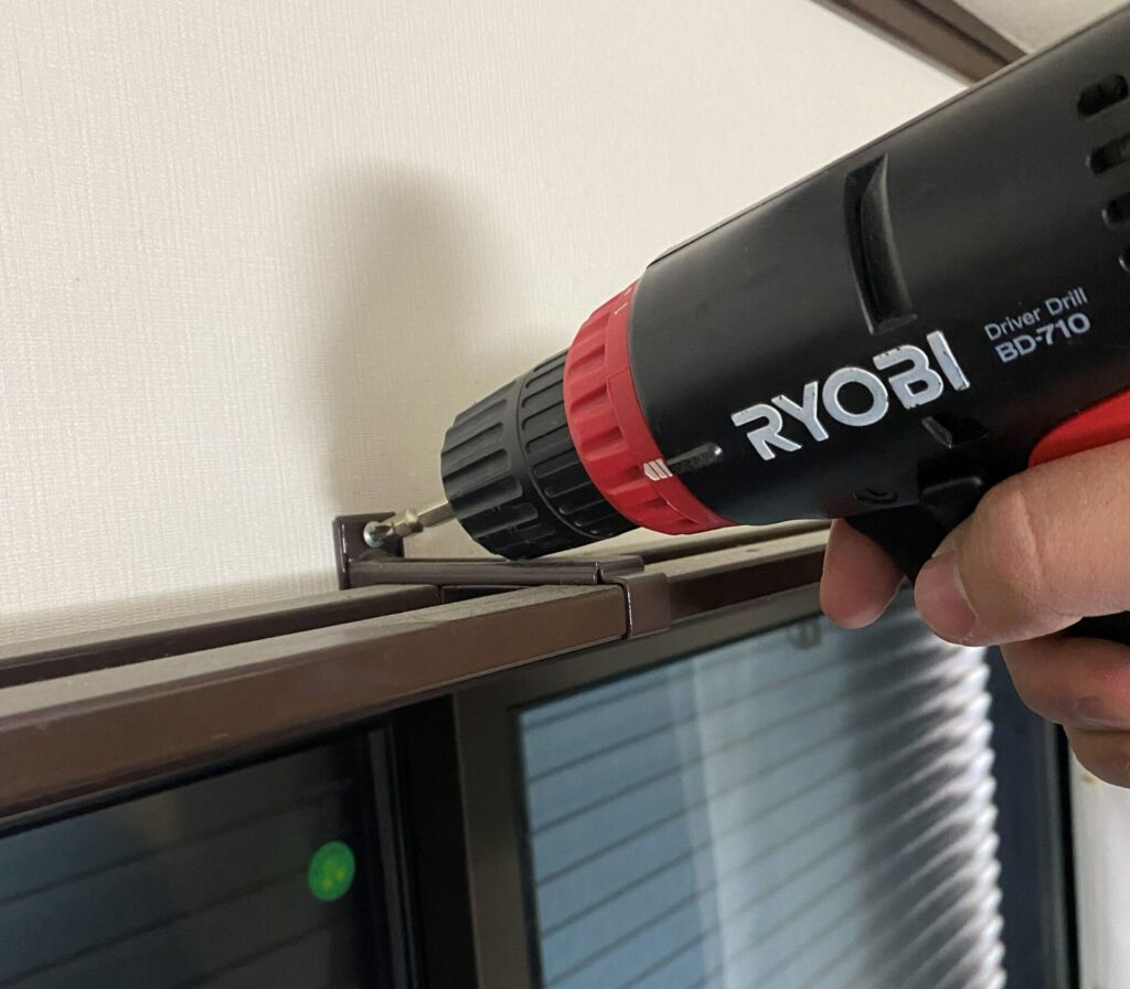 今度は壁側に電動ドリルドライバーが干渉してしまい、壁際のビスにまっすぐ届きません。