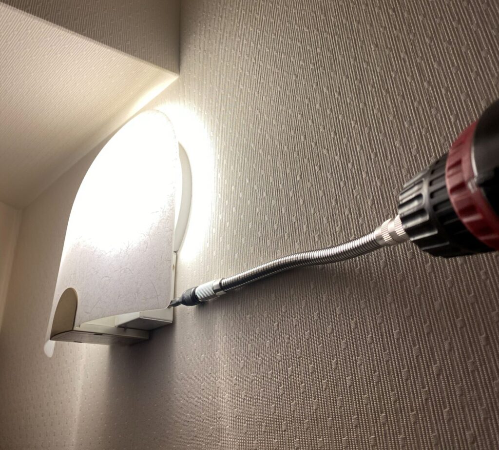 この様に取り付けられている設備は、壁際ギリギリの位置にビスがあったりもします。