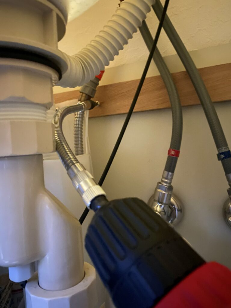 めちゃくちゃ配管が通っており、一目で電動ドリルドライバーが入るスペースが無い事が分かります。