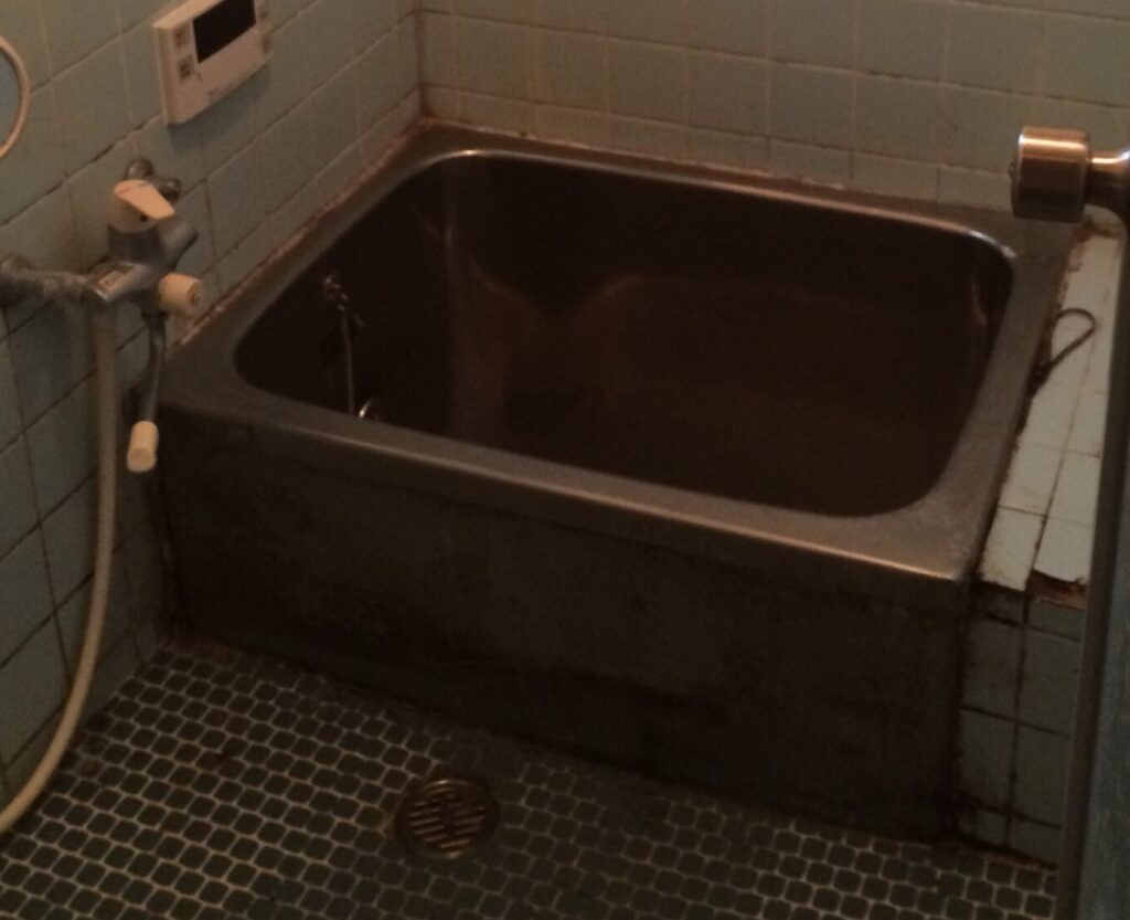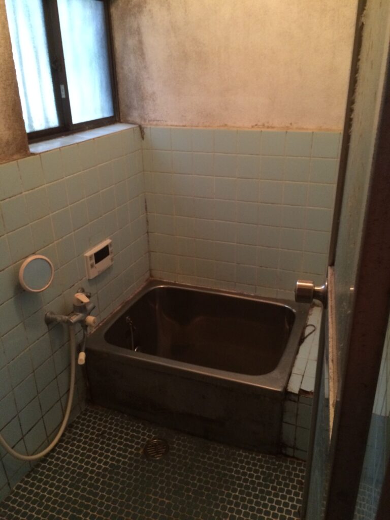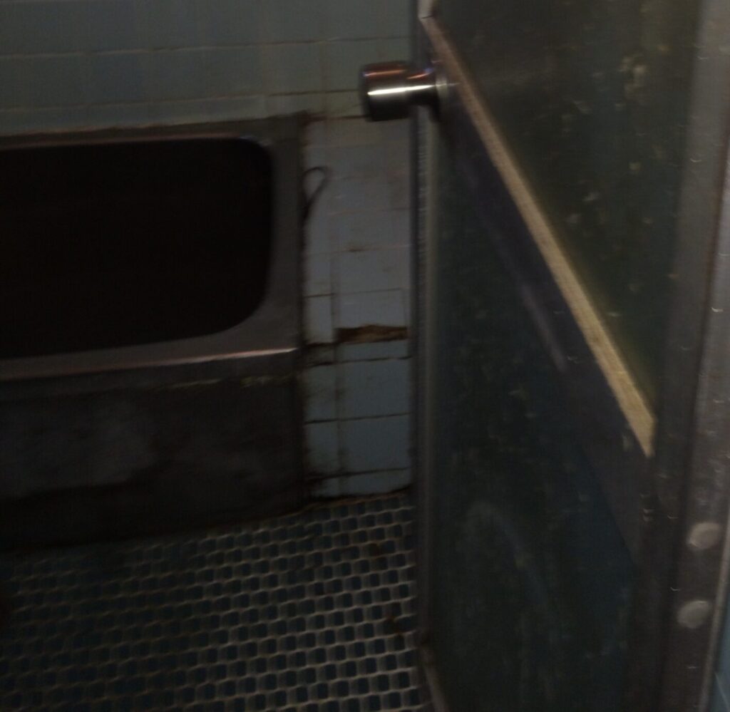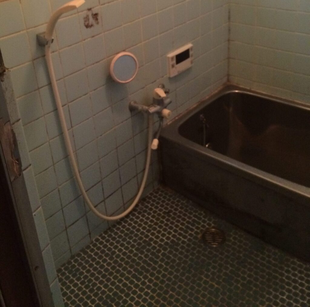 またまた『【誰でも出来る】少ない資金で月5万円稼げる貸家の探し方!』にて検索ヒットした物件。築年数30年を超えている物件ばかりなので、バスルームも昔ながらのモルタルやタイル作りの在来工法がほとんどです。ユニットバス物件なんてまずありません。しかも長年使用されていたためか、タイルが割れていたり部分的に欠けていたりすることも多いです。おまけにカビや簡単には落ちない汚れがびっしり!