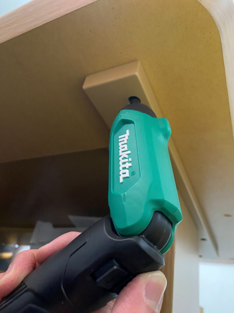 この位置のネジ止めが、通常の電動ドライバーでは大きさが邪魔して出来ないんですよね!『【DIYの役立ちアイテム②】フレキシブルシャフトが必要になる2つの理由。参照』