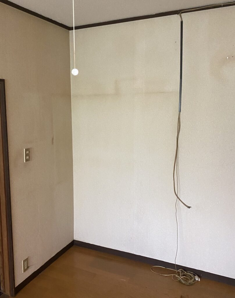 【誰でも出来る】少ない資金で月5万円稼げる貸家の探し方!』にて検索ヒットした物件。築30年を超えている物件がほとんどなので、壁紙クロスもかなり年季が入っていることが多いです。棚や家電などが置いていた跡がくっきりと残っていたり、拭き掃除ぐらいじゃ取れない汚れやくすみなどが多く残ったりもしています。